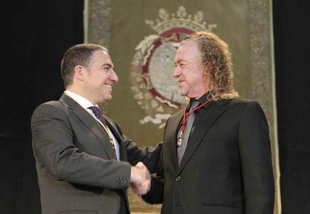 In the photograph, Jiménez with the president of the Provincial Council of Málaga, Elías Bendodo, during the Gold Medal award ceremony.